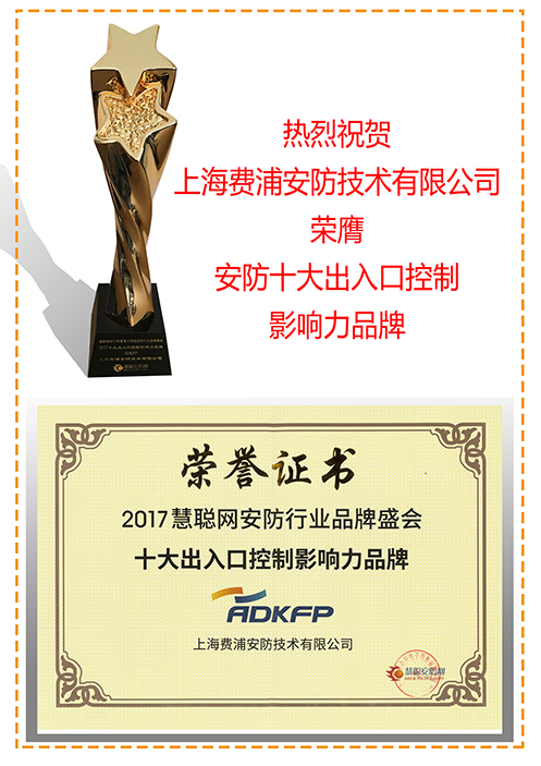 中國安防行業(yè)30強(qiáng)晉級(jí)投票于2017年6月30日18:00正式結(jié)束,在經(jīng)由中國安防行業(yè)十大品牌評(píng)選組委會(huì)的評(píng)選、眾多安防業(yè)內(nèi)人士的關(guān)注,經(jīng)過40天激烈的網(wǎng)絡(luò)投票,評(píng)出了安防十大監(jiān)控系統(tǒng)影響力品牌、 安防十大樓宇對(duì)講影響力品牌、安防十大出入口控制影響力品牌、安防十大防盜報(bào)警影響力品牌等多項(xiàng)安防行業(yè)中國排名30強(qiáng)企業(yè)。其中上海費(fèi)浦安防技術(shù)有限公司榮膺安防十大出入口控制影響力品牌前十名,在此上海費(fèi)浦安防技術(shù)有限公司向大會(huì)主辦方、組委會(huì)及各界長期關(guān)心和支持費(fèi)浦安防的朋友們表示衷心的感謝。